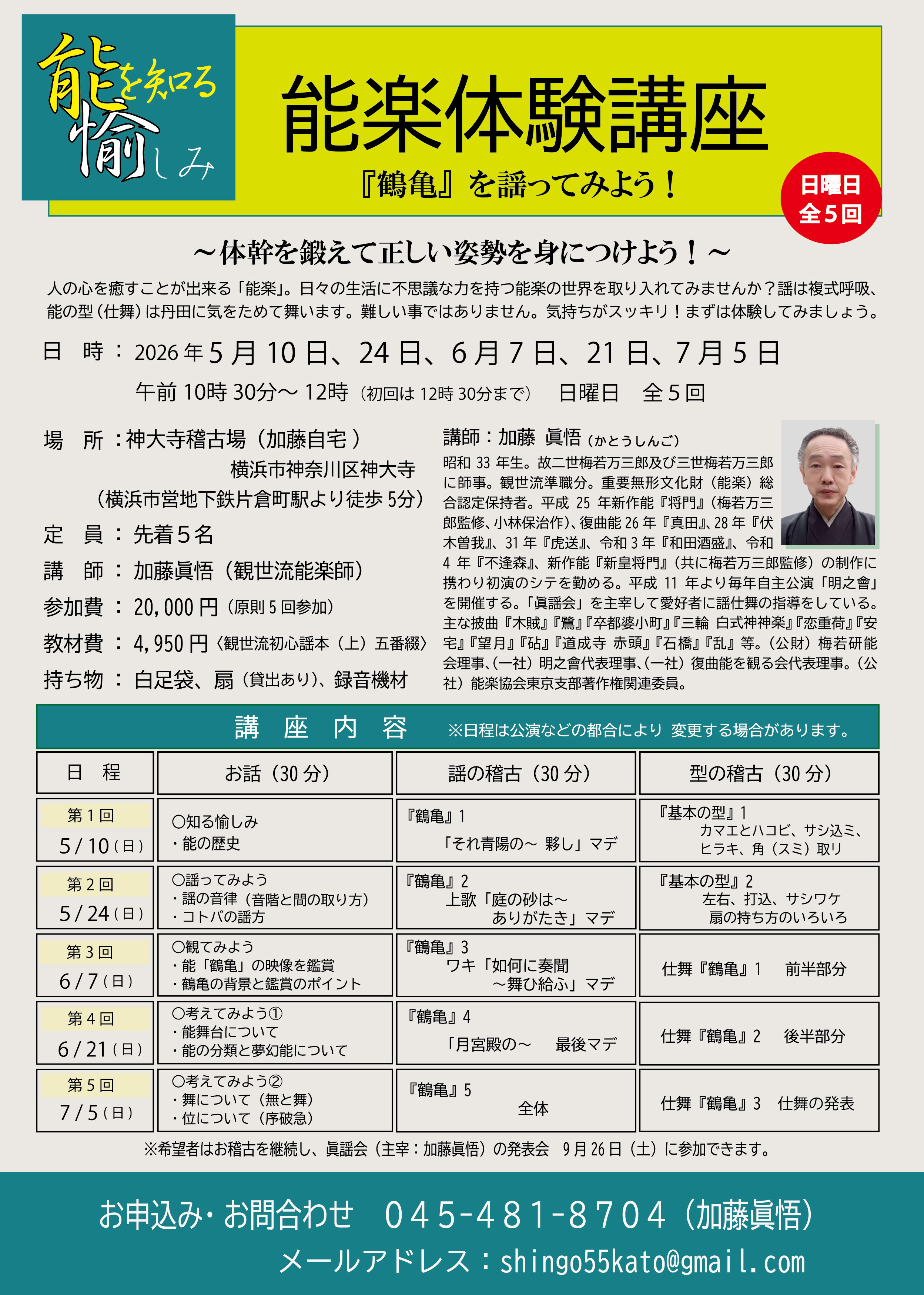 ※ 講座終了後も希望者はお稽古を継続し、眞謡会(加藤眞悟主宰)の